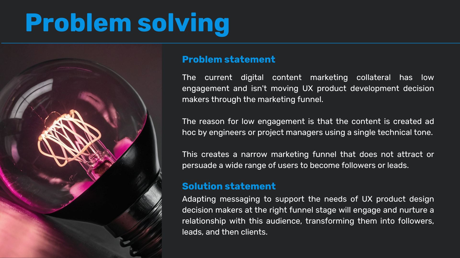 Context: Speck Design was a UX product design and engineering firm whose messaging didn’t reflect their powerful (and persuasive) user-centric beliefs. To engage and convert prospects, I used design thinking strategies to reveal Speck’s core UX principles, then created guides, messaging, and campaigns around them.